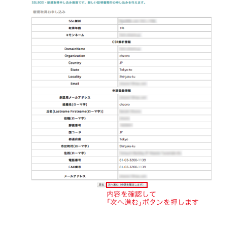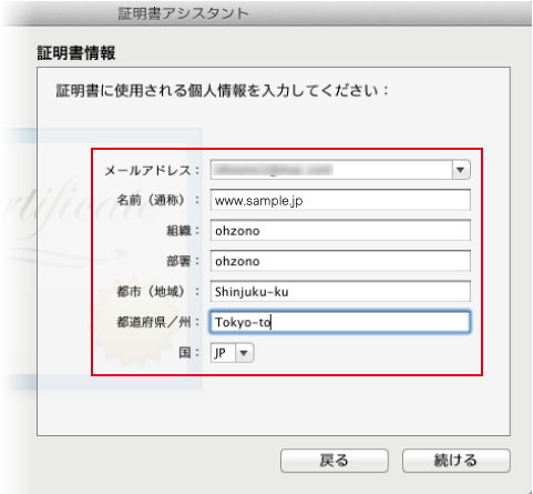 メールアドレスは証明書と中間証明書が送られてくるアドレスなのと、変更が効かなくなる部分なので注意して入力したいです。