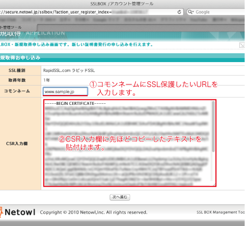 ネットオウルのラピットSSLという認証サービスに申し込み済みという例でブログを書きます。